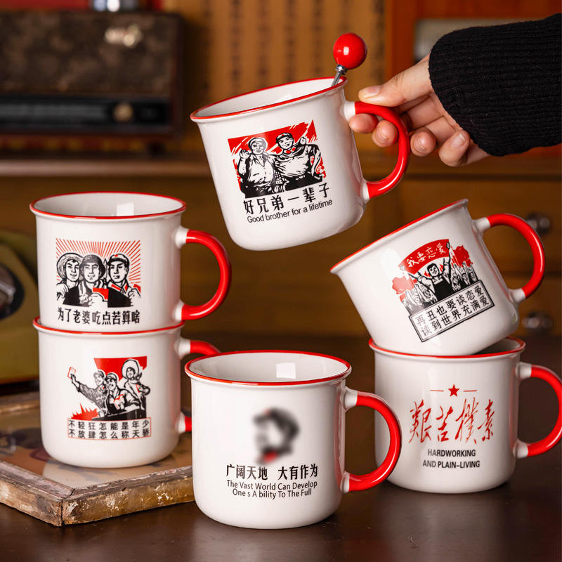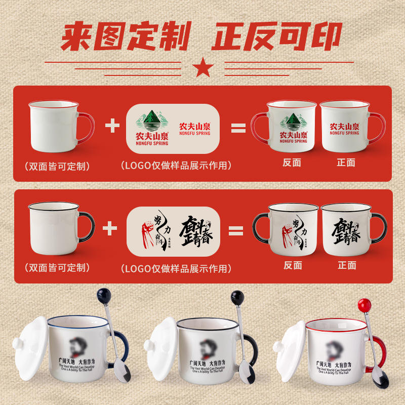 Taza de cerámica retro con aspecto de esmalte, diseño de logotipo personalizado, estilo vintage, serigrafía, tazas para regalos, obsequios empresariales