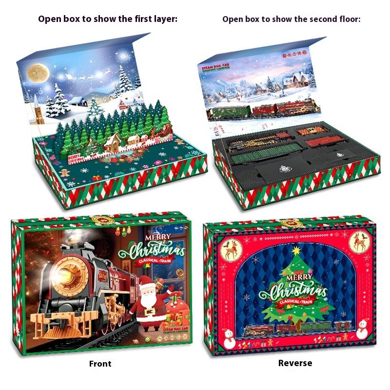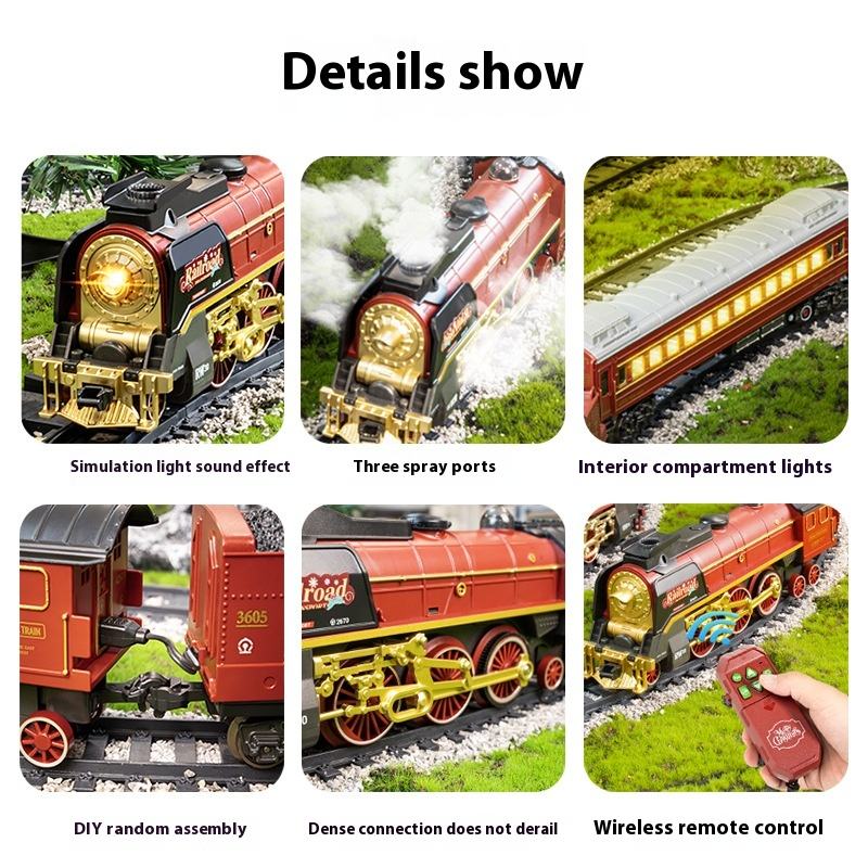 Tren navideño retro de juguete, tren de vapor eléctrico con control remoto, set ferroviario de metal ABS con función de humo, apto para niños.