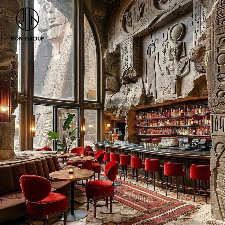 Mesa redonda de cafetería retro, muebles comerciales al por mayor, sillas de restaurante de terciopelo rojo personalizadas para cafetería de Hotel