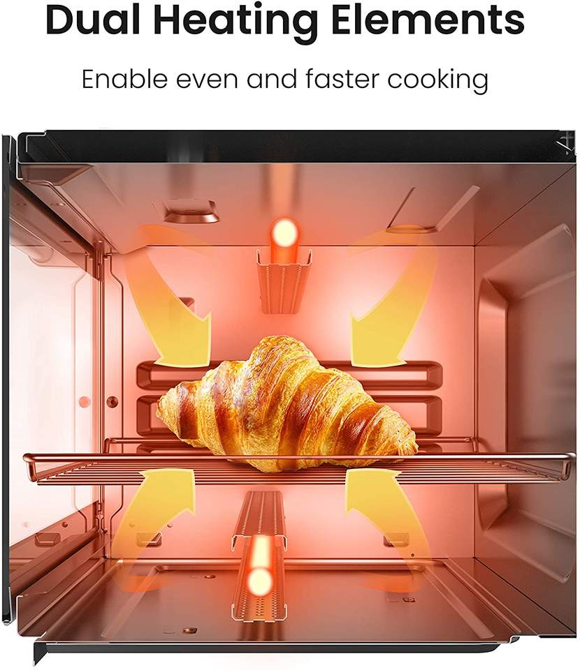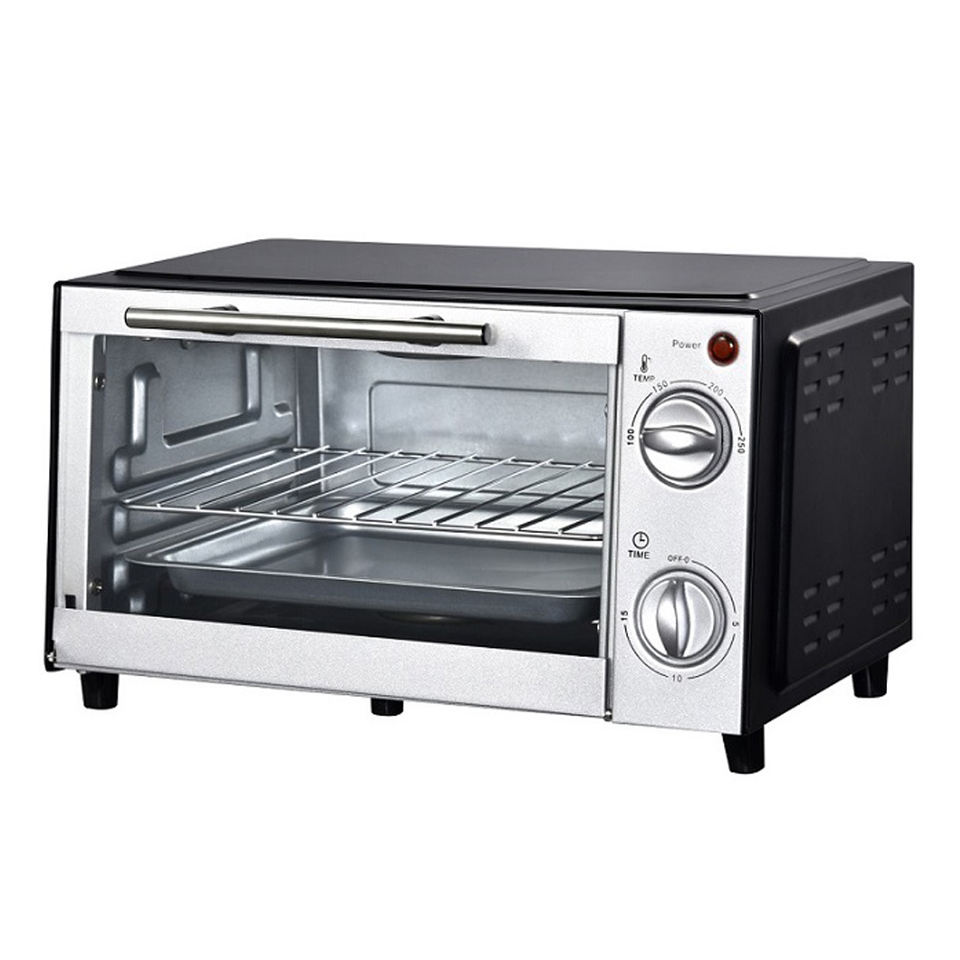 Horno tostador pequeño de 4 rebanadas, 9 litros, con temporizador de 60 minutos, función de hornear y tostar