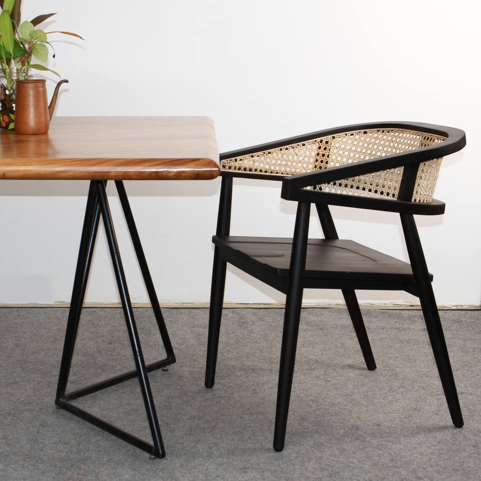 Silla de Comedor Retro con Estructura de Madera de Caoba Sólida y Respaldo de Ratán para Comedor