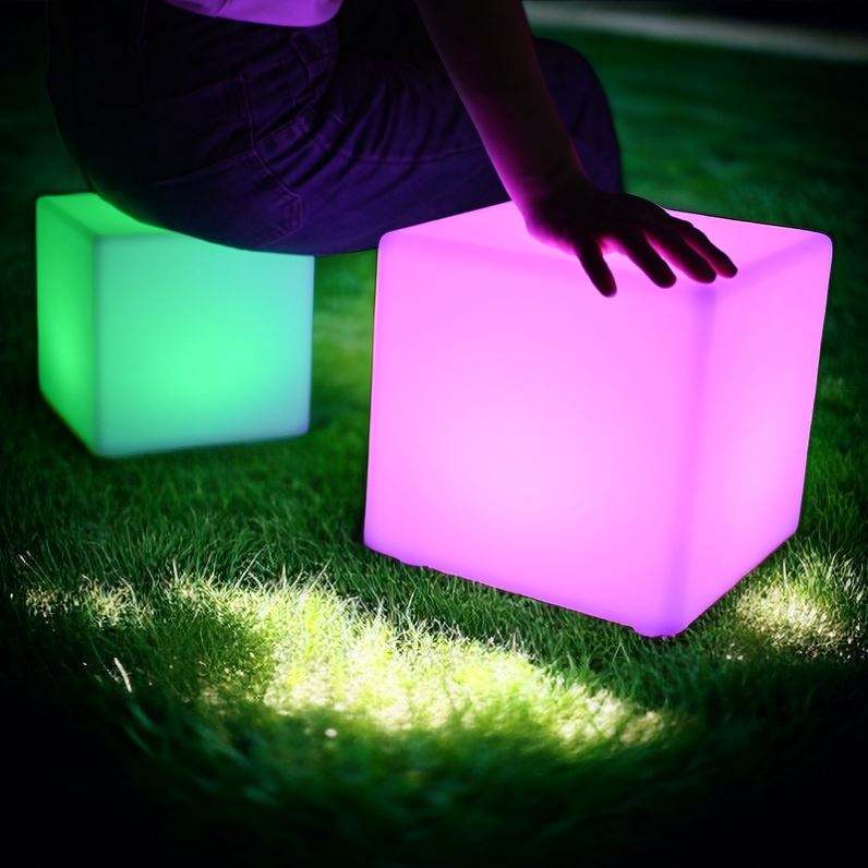 Nombre del producto::Silla plástica moderna del cubo del PE LED y recargable fijada