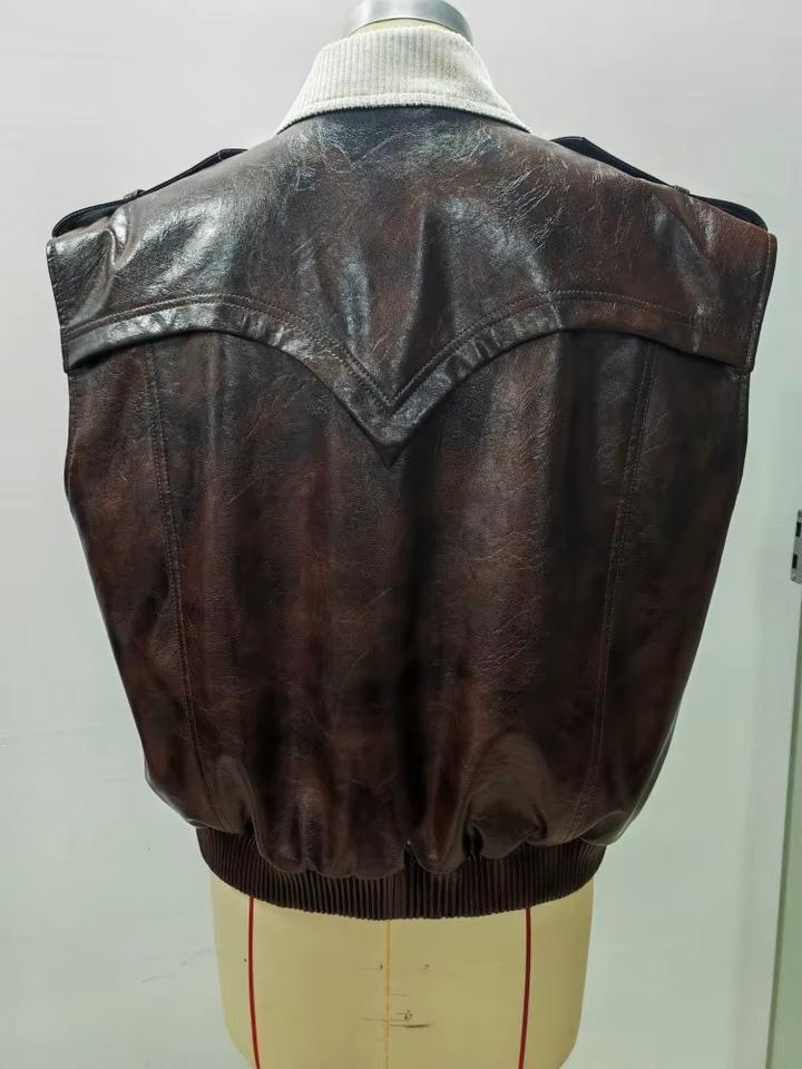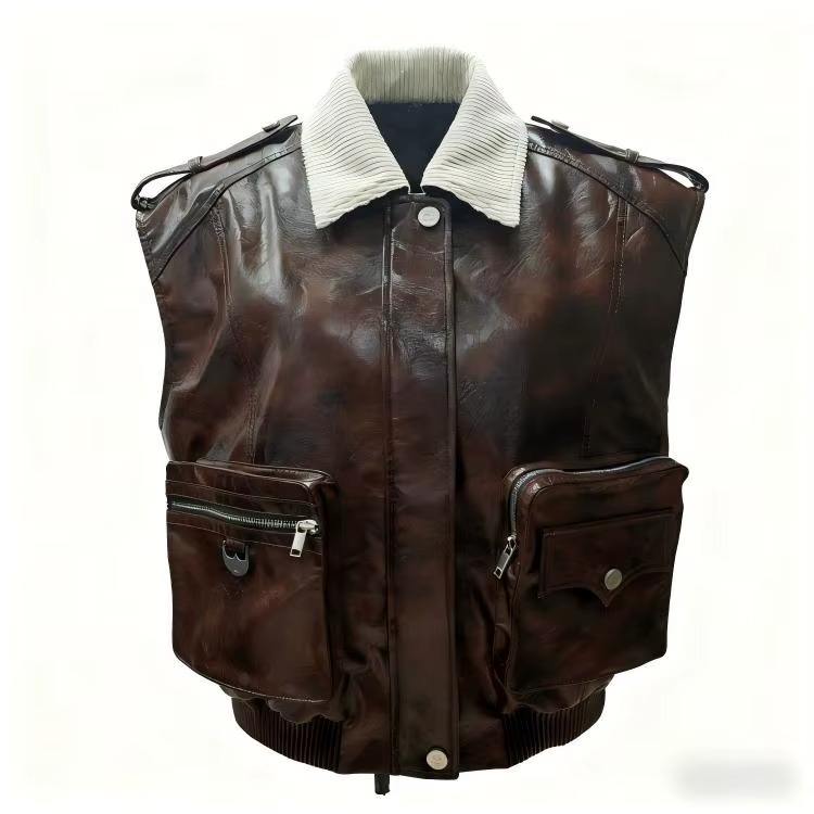 Chaleco Utilitario Retro de PU con Efecto Desgastado y Cuello de Forro Polar - Prenda Exterior de Invierno para Hombre, Casual, con Múltiples Bolsillos y sin Mangas