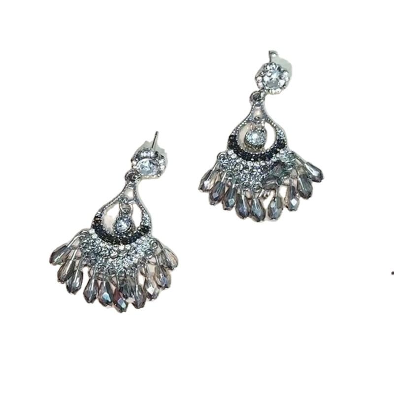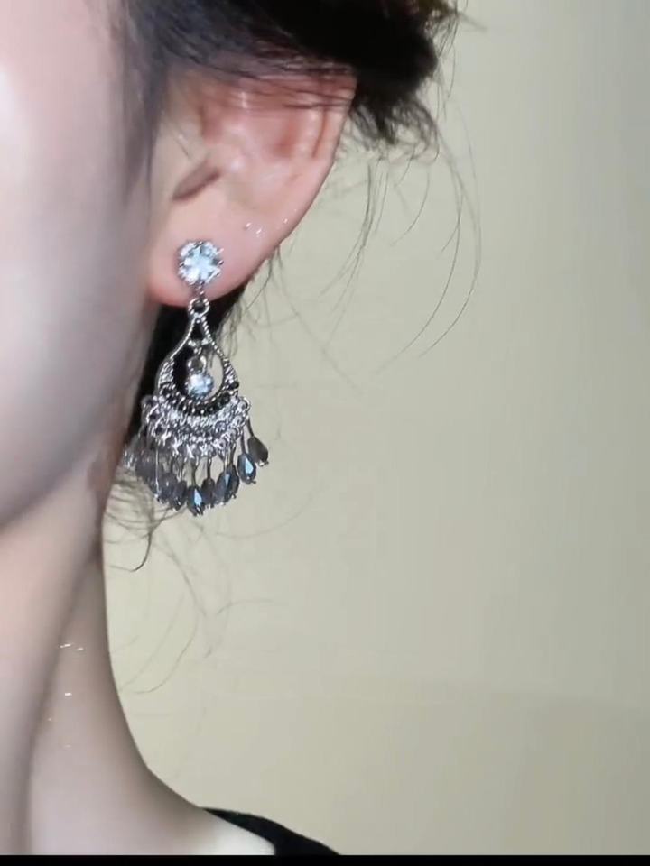 Pendientes de gota étnicos retro Pendientes de plata con borla colgante de diamantes de imitación geométricos
