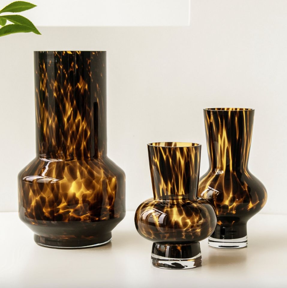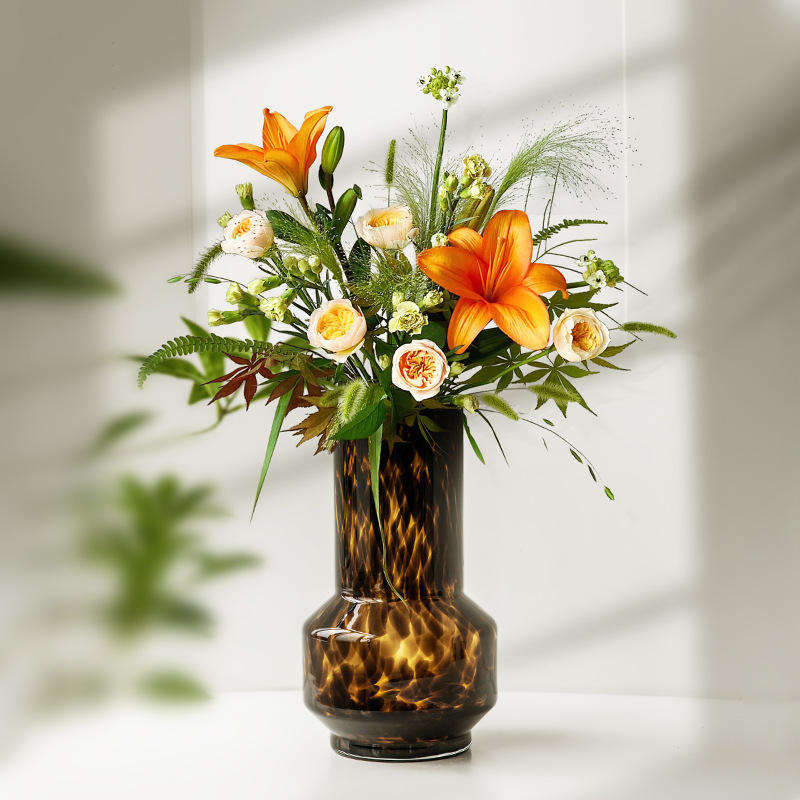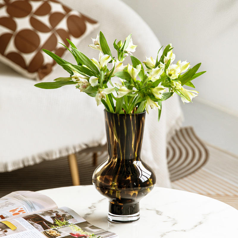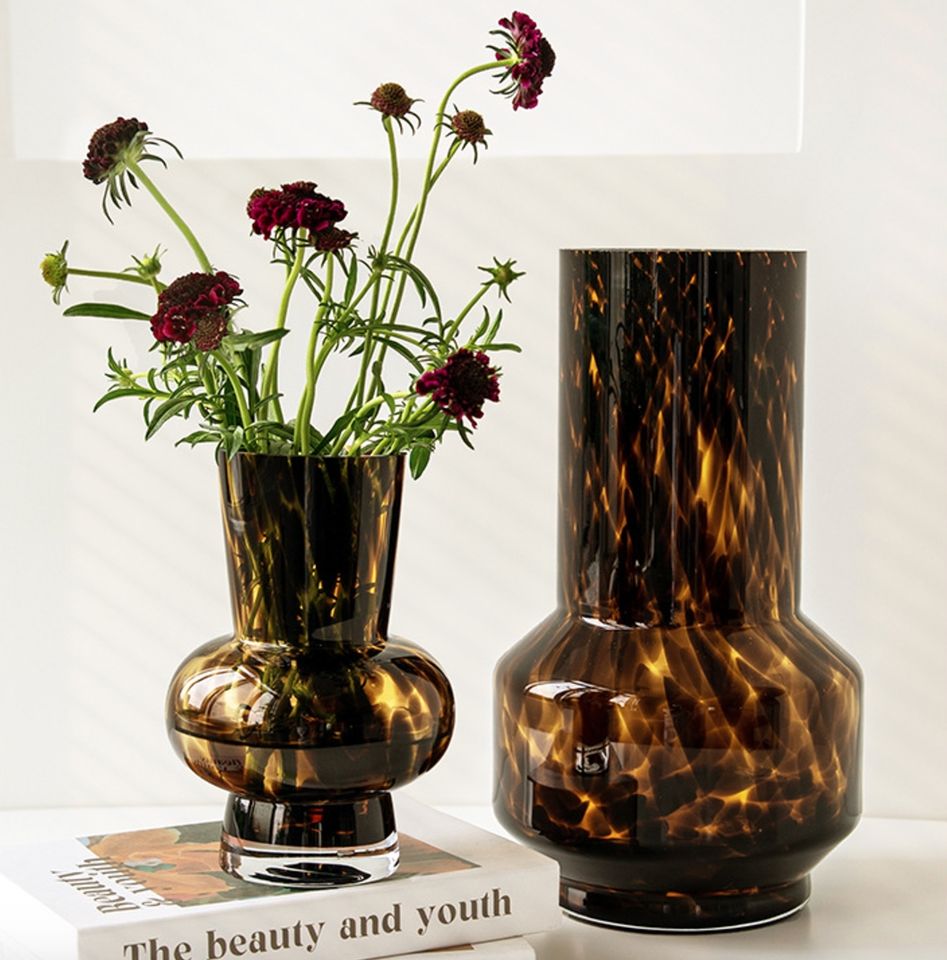 Jarrón de Vidrio Colorido con Estampado de Leopardo, Estilo Europeo Retro, Hecho a Mano, para Arreglos Florales, Adornos con Estampado de Leopardo
