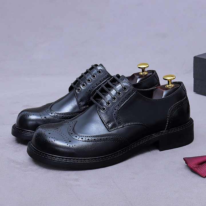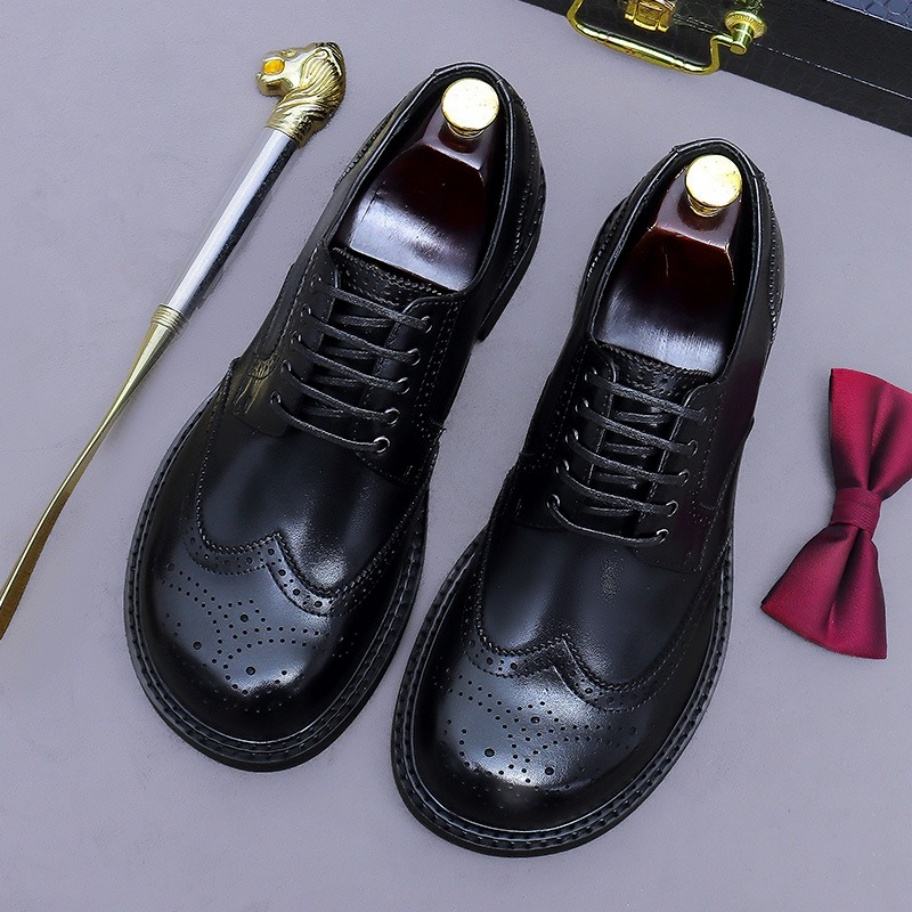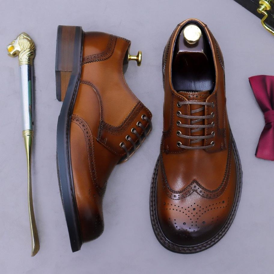Zapatos de Vestir Formales Retro para Hombre, de Piel Auténtica, con Cordones, Estilo Brogue Derby, Casuales de Negocios, para Boda, de Alta Gama, Resistentes