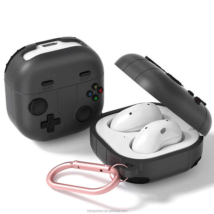 Funda de silicona con diseño de reproductor de juegos retro apta para Galaxy buds Live buds 2 Pro/buds FE con llavero