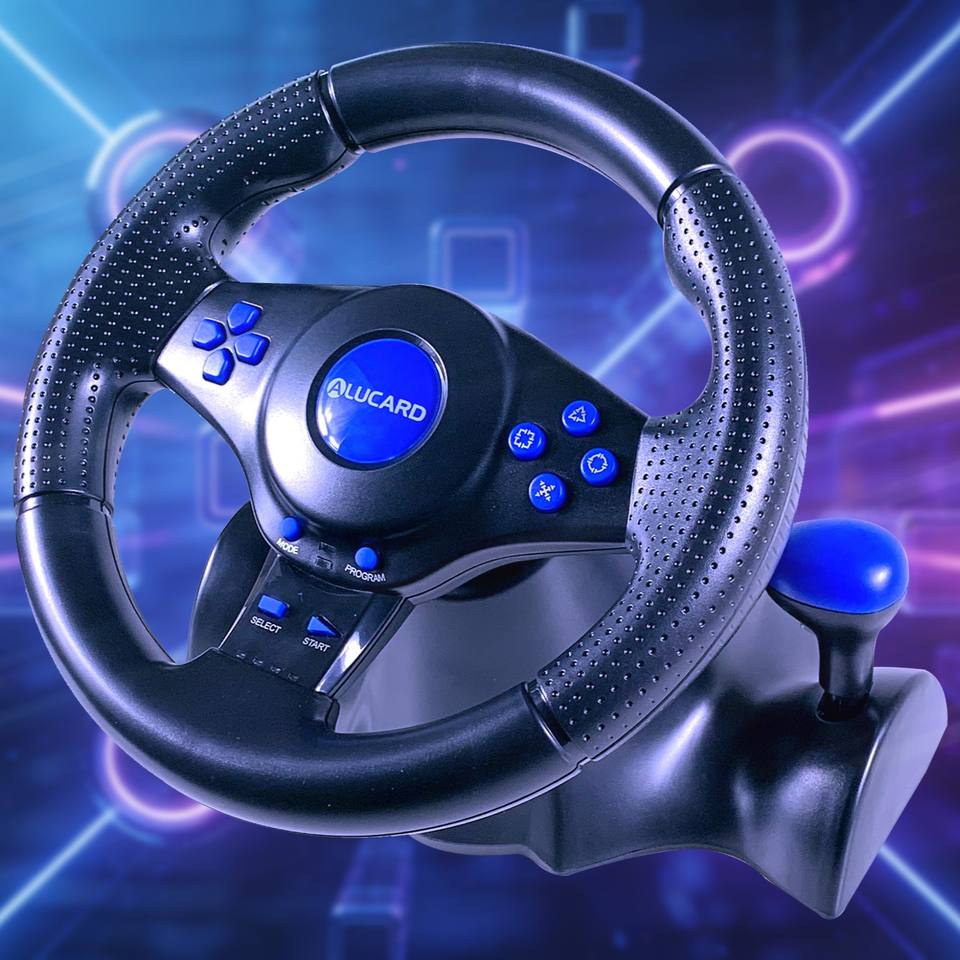 Volante de Carreras Retro con Vibración de Alta Fidelidad, Diseño Ergonómico con Ventosas, Compatible con PC/P2/P3, Botones Programables