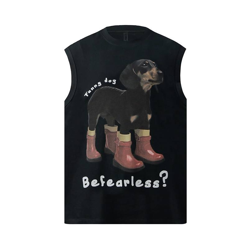 Camiseta sin mangas Retro Hunting Dog Head Doberman Inu para hombre, camiseta sin mangas suelta Hip Hop Explosion Street para hombre