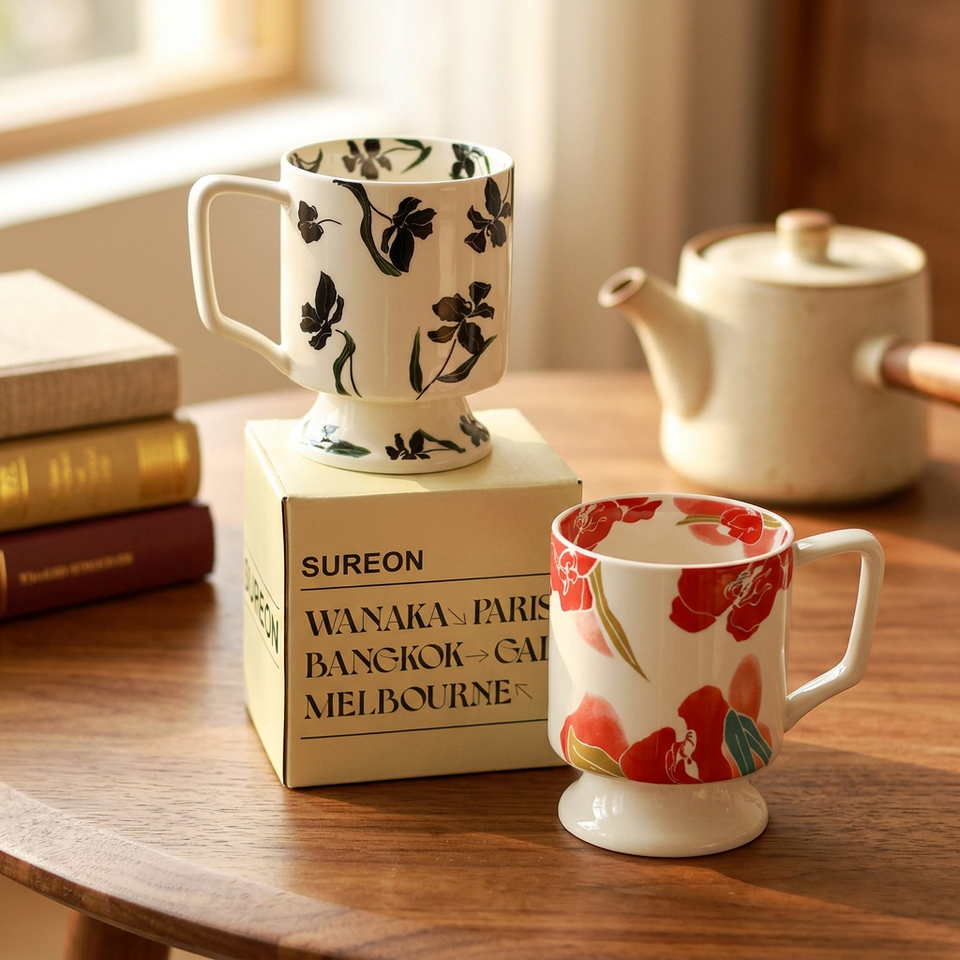 Taza de Café de Porcelana Retro Iris con Base Alta, para Té de la Tarde, Capuchino, Recuerdo, Estilo Antiguo, Apta para Microondas y Lavavajillas