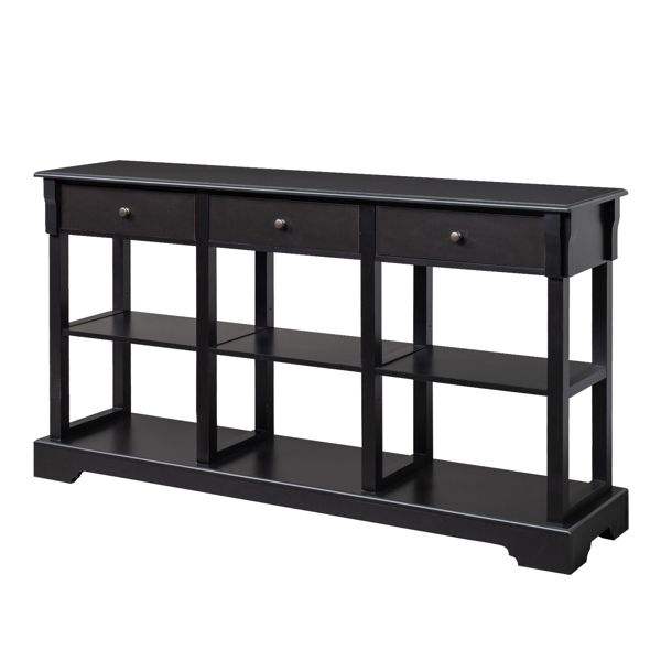 Mueble de Cocina Retro, Aparador, Consola, Mesa de Sofá con 3 Cajones y Amplio Espacio de Almacenamiento, Estantes Abiertos, Mueble de Almacenamiento Decorativo
