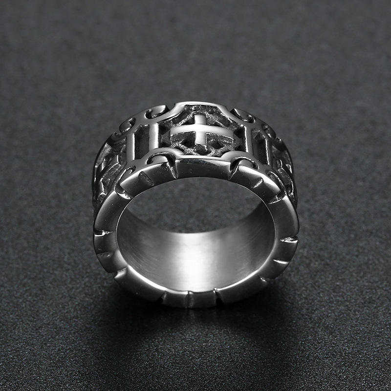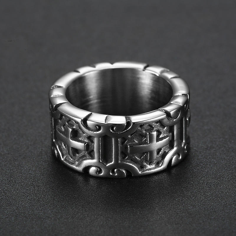 Anillos de Cruz Latina Retro de Acero Inoxidable con Símbolo Cristiano Crux Ordinaria Jesucristo Crucificado Anillos de Banda para Hombres y Mujeres