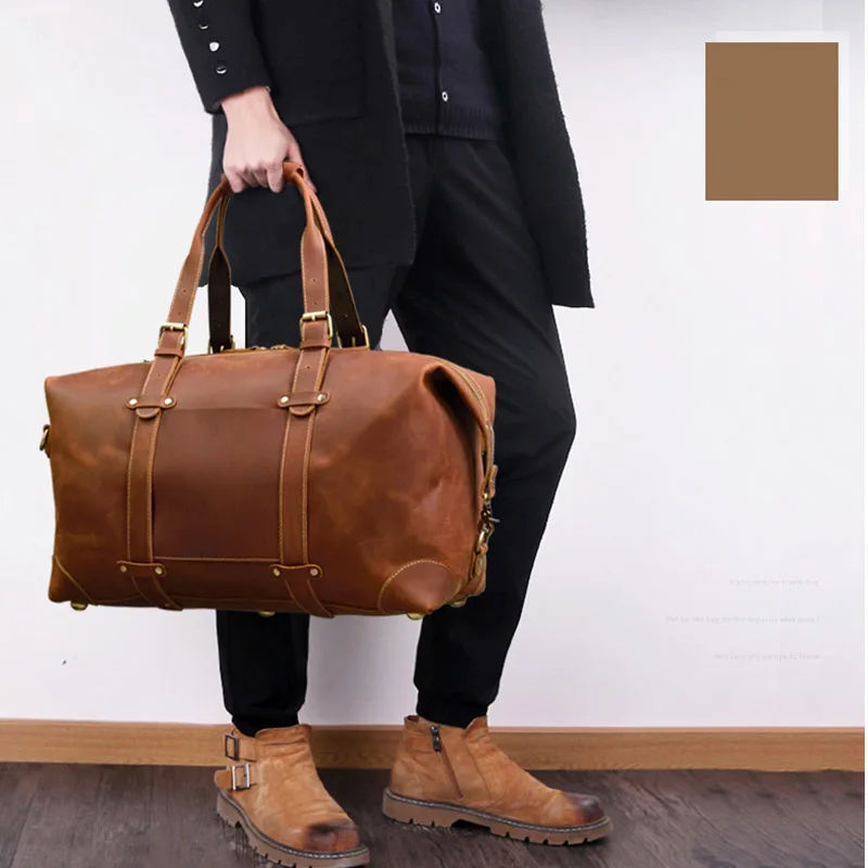 Bolsa de viaje de cuero retro para hombre, bolsa de equipaje de gran capacidad de cuero Crazy-Horse, bolsa diagonal portátil para hombre de piel de vaca de capa superior