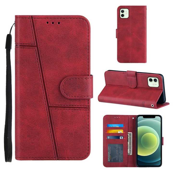 Funda de cuero tipo cartera Retro Line para IPhone 17 Air 16 15 14 13 Mini 12 Pro Max 8 7 X XR 6 Plus, funda con soporte para teléfono y correa Vintage