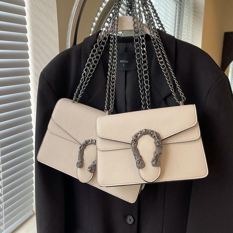 Bolso Retro de gama alta con estampado de Litchi para mujer, bolso Vintage de Color puro con cierre para axilas, pequeño bolso cruzado cuadrado de un solo hombro