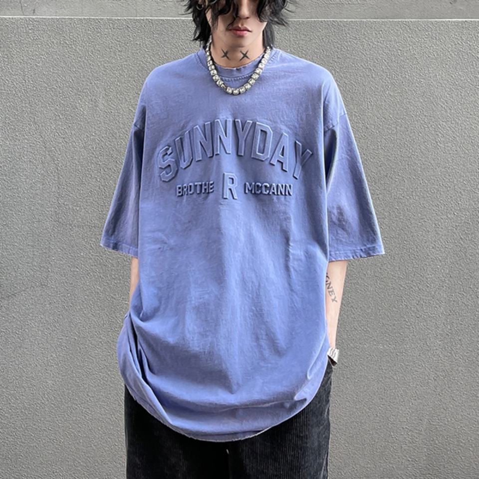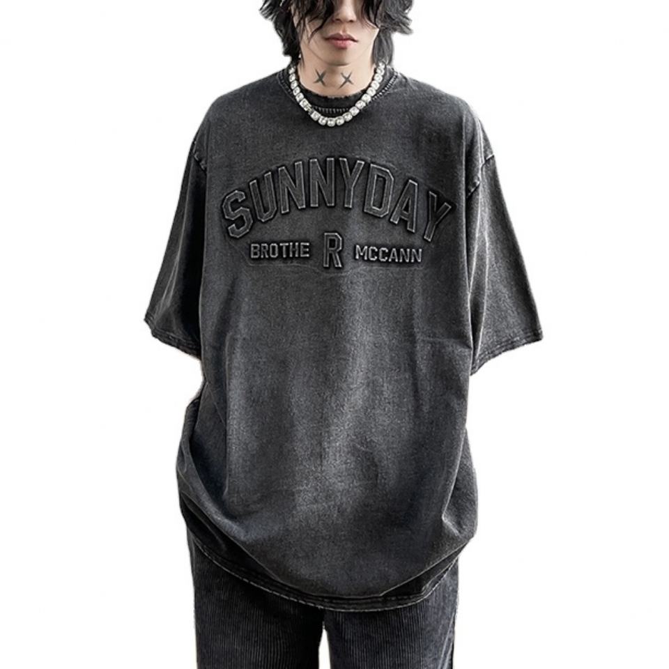 Camiseta Retro de Verano para Hombre, Estilo Urbano, Unisex, Lavada, con Relieve, Manga Corta