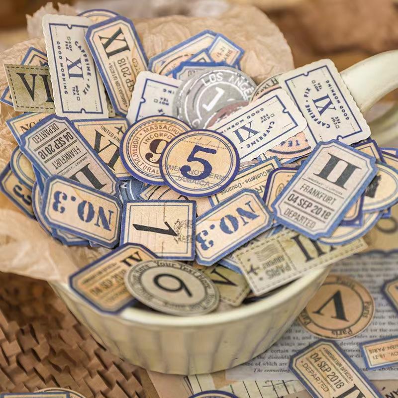 Papel Retro para Libros de Contabilidad - 100 Hojas/Set con Números en Inglés, Etiquetas Decorativas Troqueladas, Bolsa de Pegatinas para Decoración del Hogar