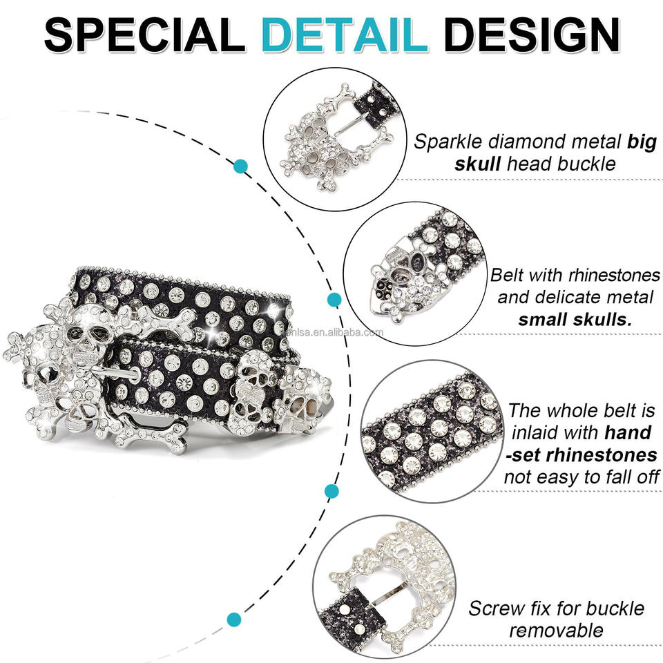 Cinturón Vaquero Retro con Hebilla Metálica, Cinturón BB Imon con Cuentas, Correa de Cuero PU con Diamantes, Hebilla de Calavera, Cinturones Vaqueros con Pedrería para Mujer