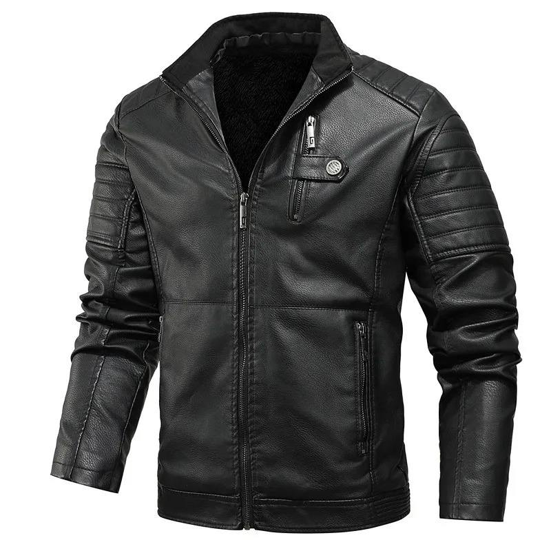 Chaqueta de Cuero Retro para Motocicleta, Abrigo con Cremallera y Solapa, Estilo Hip Hop, Estilo Americano, Moda Masculina