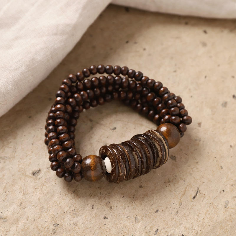 Pulsera Retro Multicapa de Cuentas de Madera y Concha de Coco, Estilo Étnico, Pulsera de Mano Multicapa Simia, Accesorio para Mujer