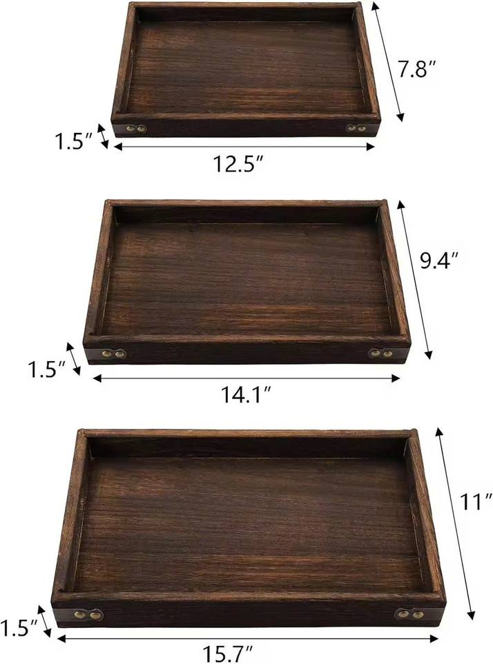 Juego de Bandejas Retro para Servir, 3 Piezas, Diseño Personalizable, Madera Ecológica Hecha a Mano, Duradera, para Comida, Té, Café, Decoración del Hogar, Regalo para Cocina