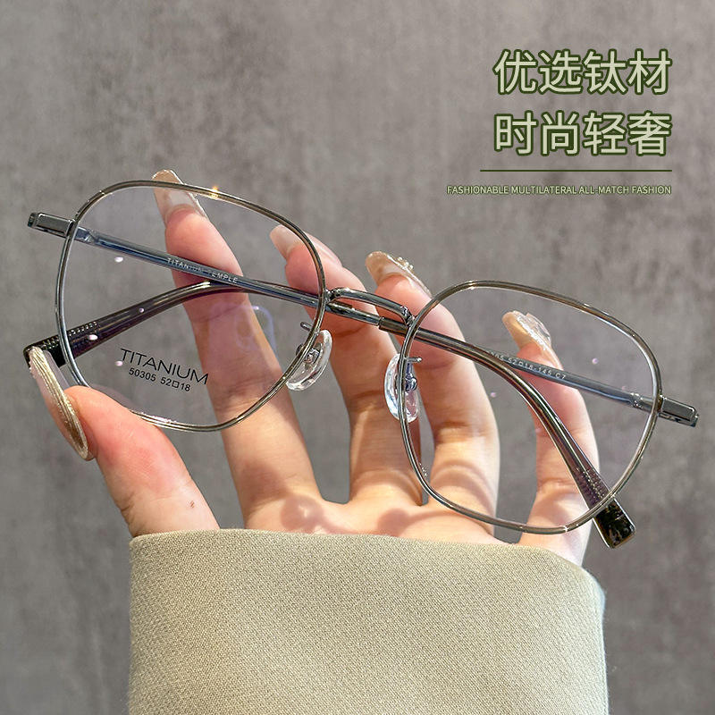Gafas de montura poligonal retro ultraligeras de titanio puro con montura ancha para mujer 50305 Danyang, monturas de gafas al por mayor