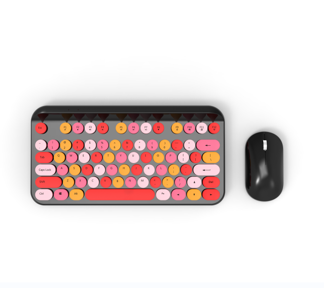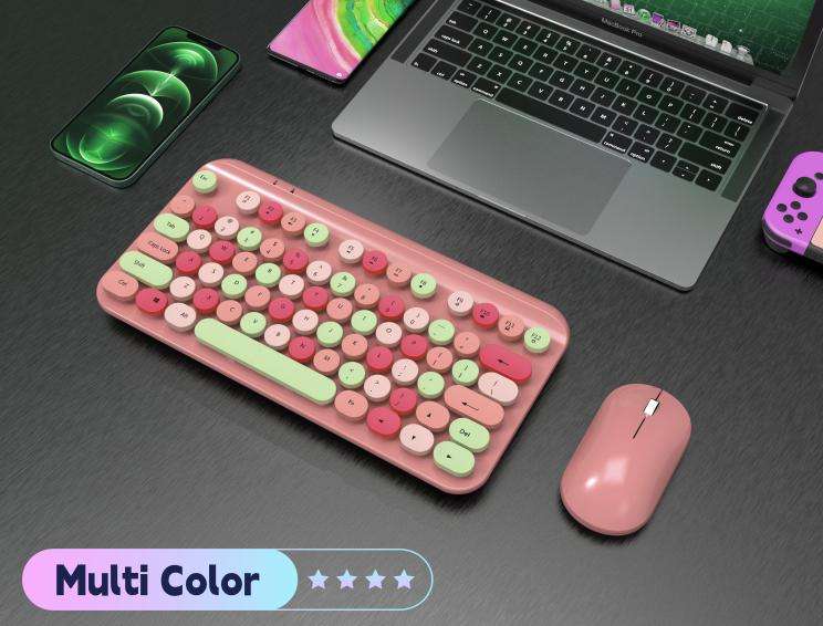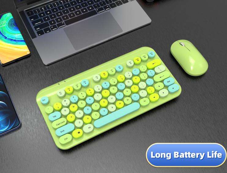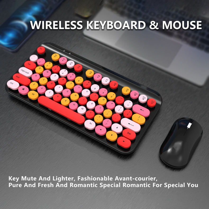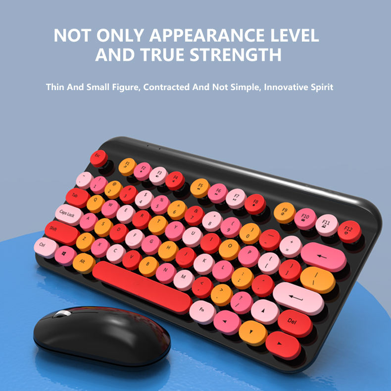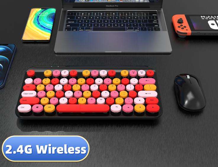 Teclado y ratón inalámbricos Kecap redondos Punk Retro, juego de teclado fino Slient Chocolate, interfaz USB, nuevo estilo proyectado