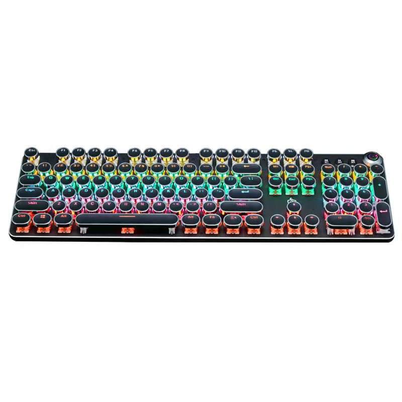 Teclado mecánico retroiluminado estilo punk con perilla electrochapada, teclado para juegos con cable para computadora