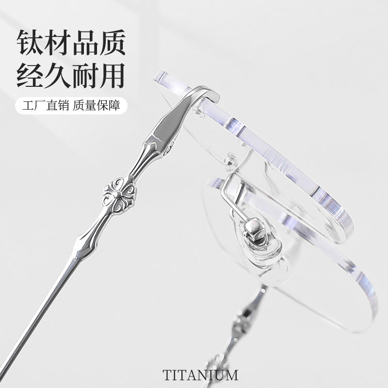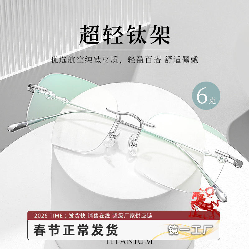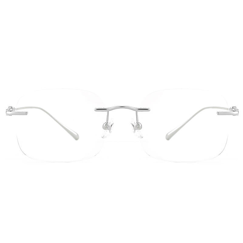 Montura de gafas retro de titanio puro sin montura 68018 con filtro de luz azul para mujer, estilo empresarial, diseño rectangular