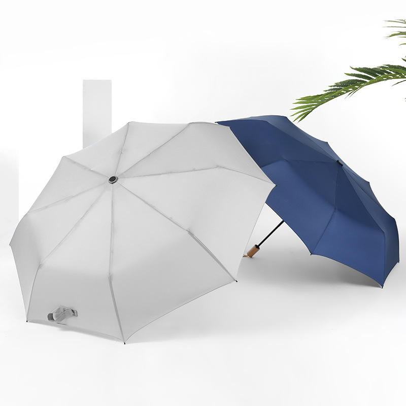 Nombre:Paraguas plegable de 3 secciones con mango compacto de madera personalizado