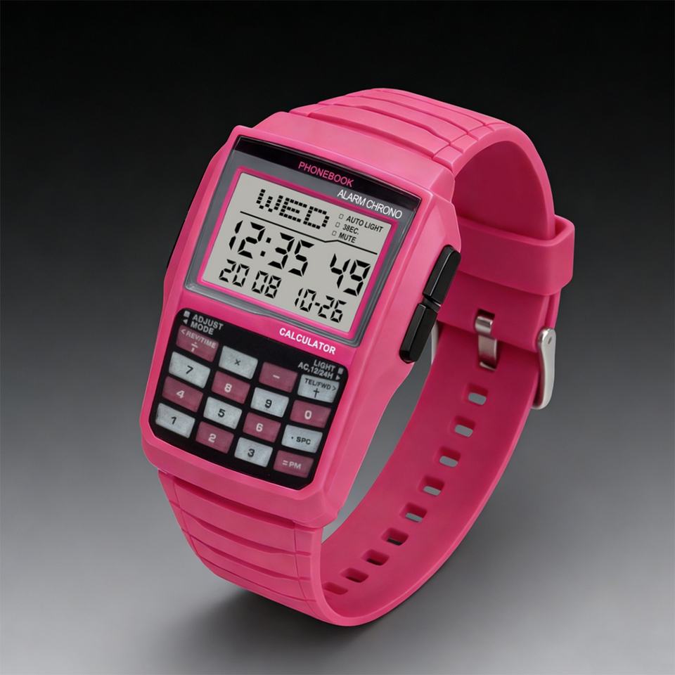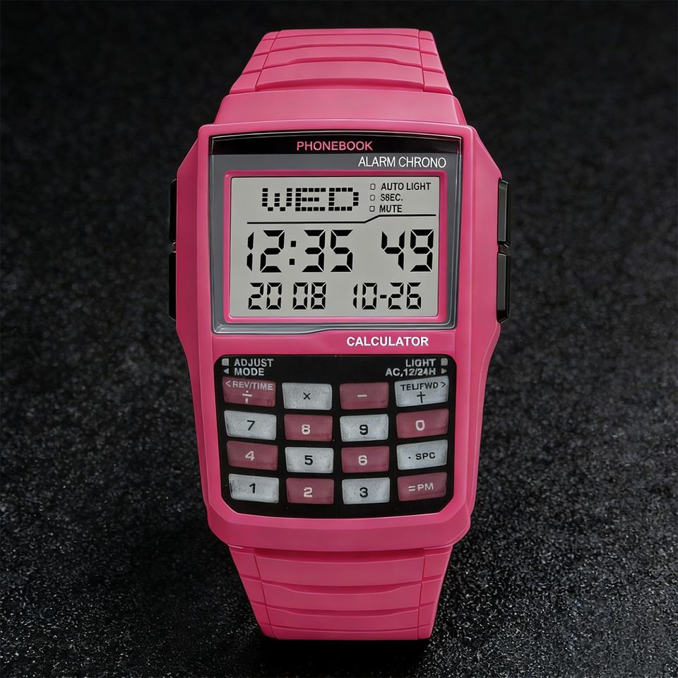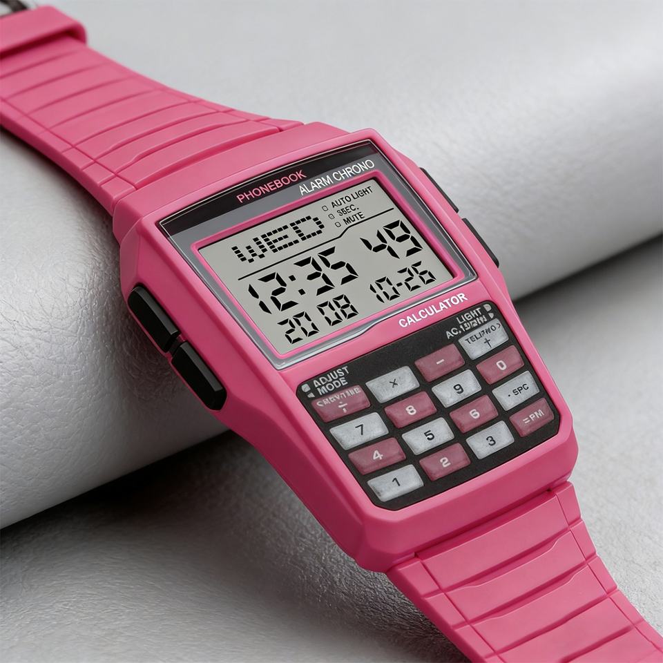 Reloj Calculadora Deportivo Retro para Estudiantes, Multifuncional, con Luz Nocturna LED, Estilo Computadora Digital Electrónica, Alarma, Color Rosa