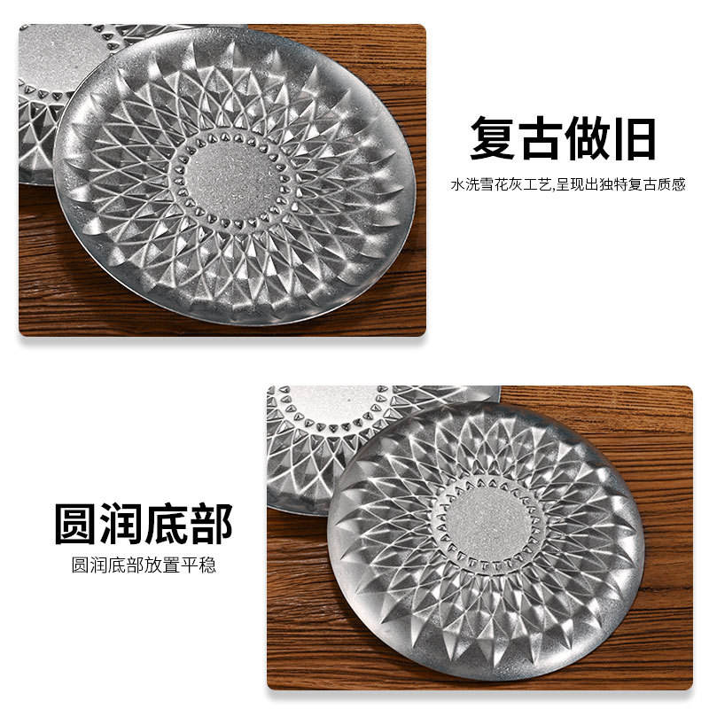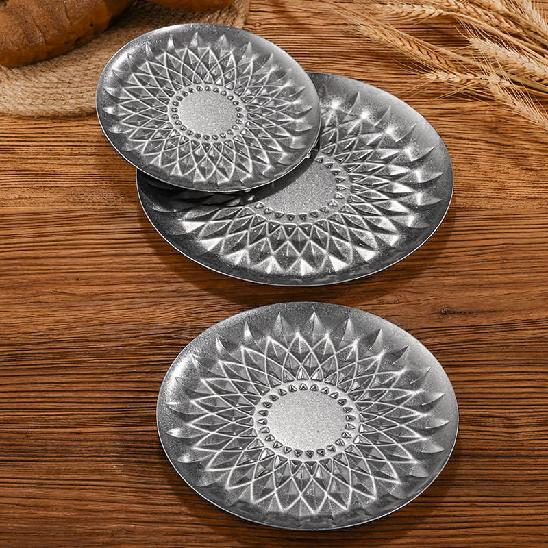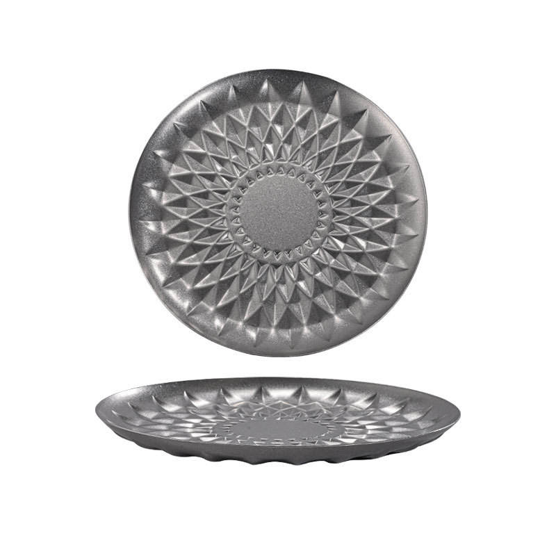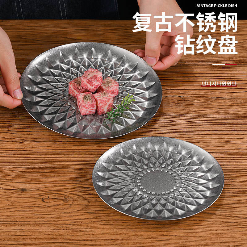 Plato Redondo de Acero Inoxidable Estilo Retro con Diseño de Diamantes para Frutas, Bandeja para Comida Occidental, Plato para Filetes, Ideal para Hoteles y Fiestas