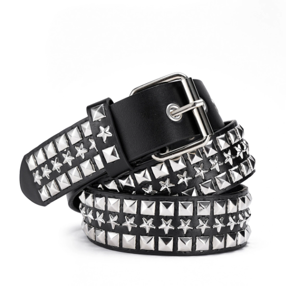 Ojal de remache de punk rock con tachuelas negras de estilo retro con hebilla de pasador de metal brillante Cinturones de cuero unisex para jeans