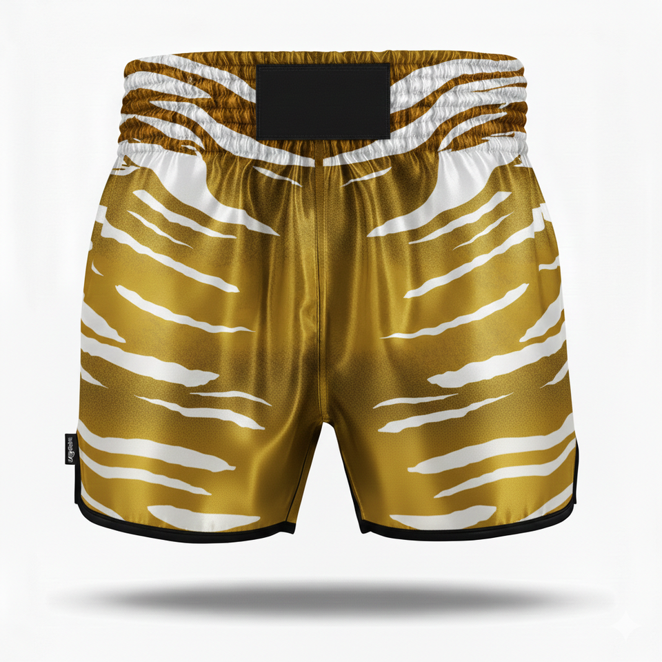 Pantalones Cortos de Kickboxing Estilo Retro con Detalles Dorados, Shorts de Muay Thai Clásicos con Escritura Tailandesa Auténtica