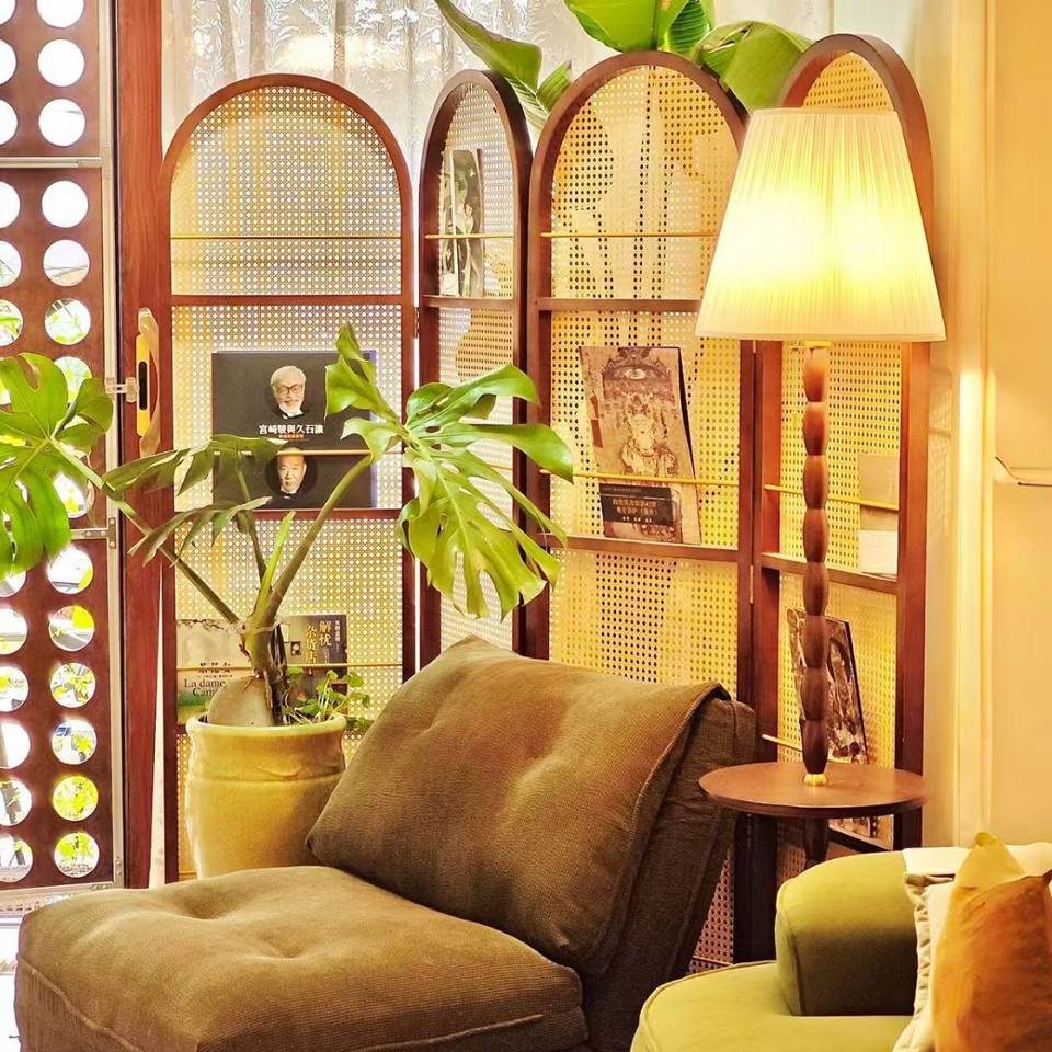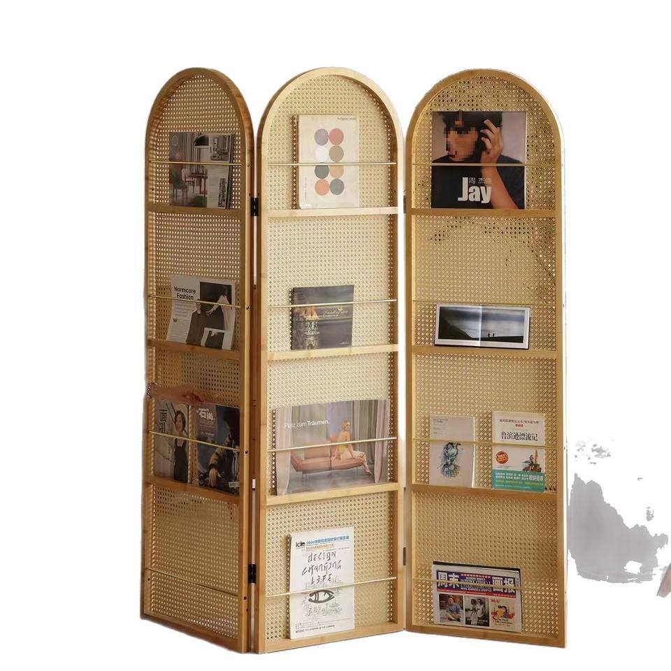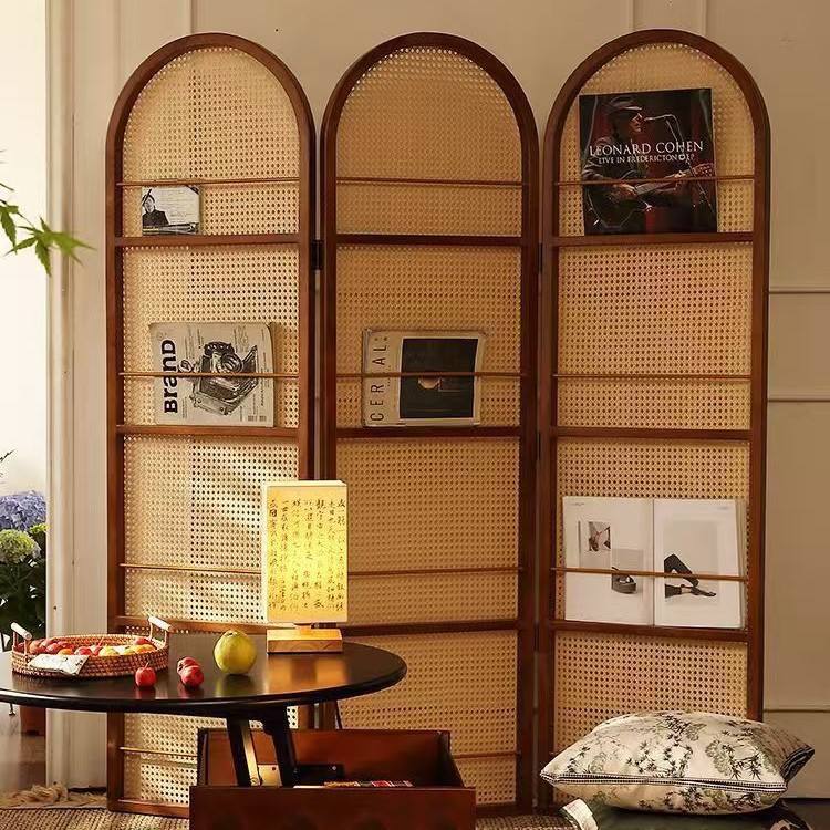Biombo plegable de ratán estilo retro con estantes para sala de estar, dormitorio, entrada, divisor de ambientes