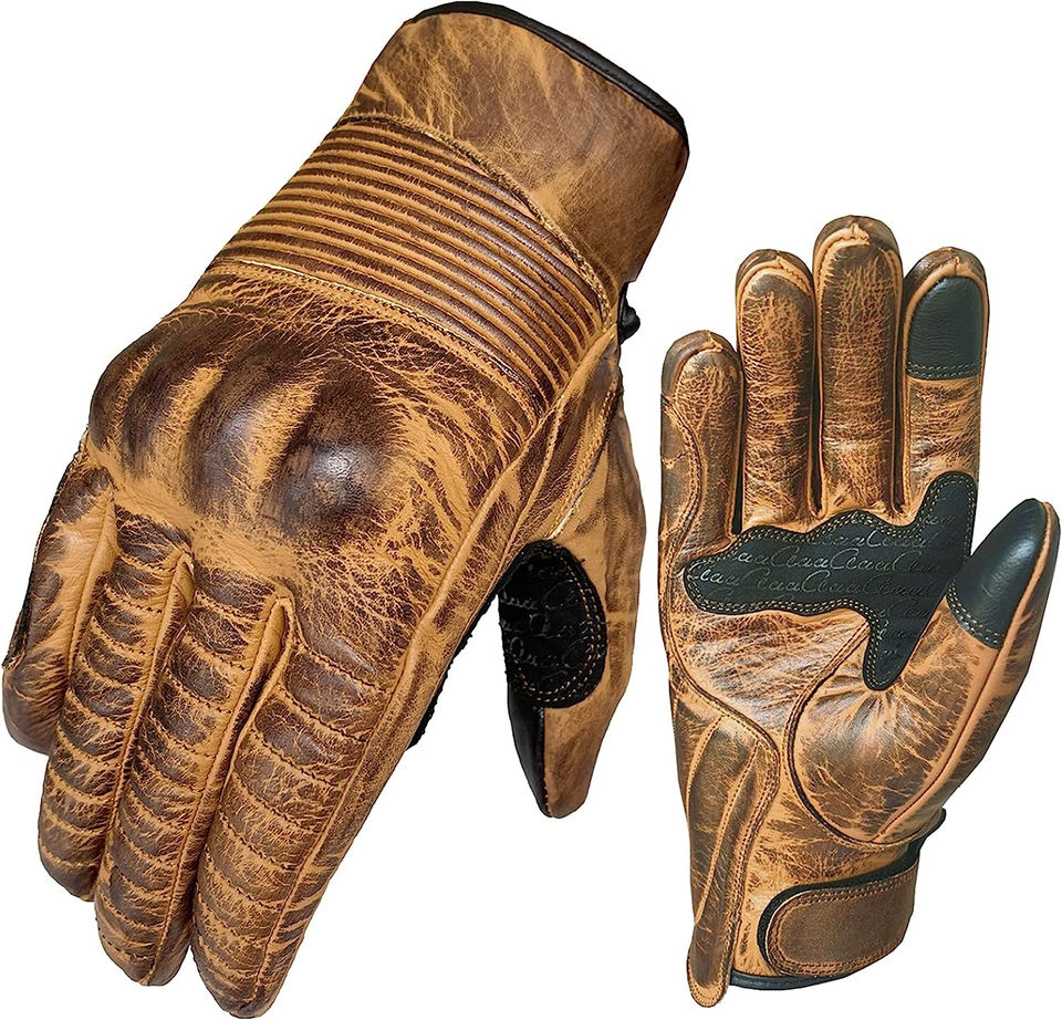 Guantes de carreras de estilo retro Guantes de moto de cuero y fibra de carbono para ciclismo