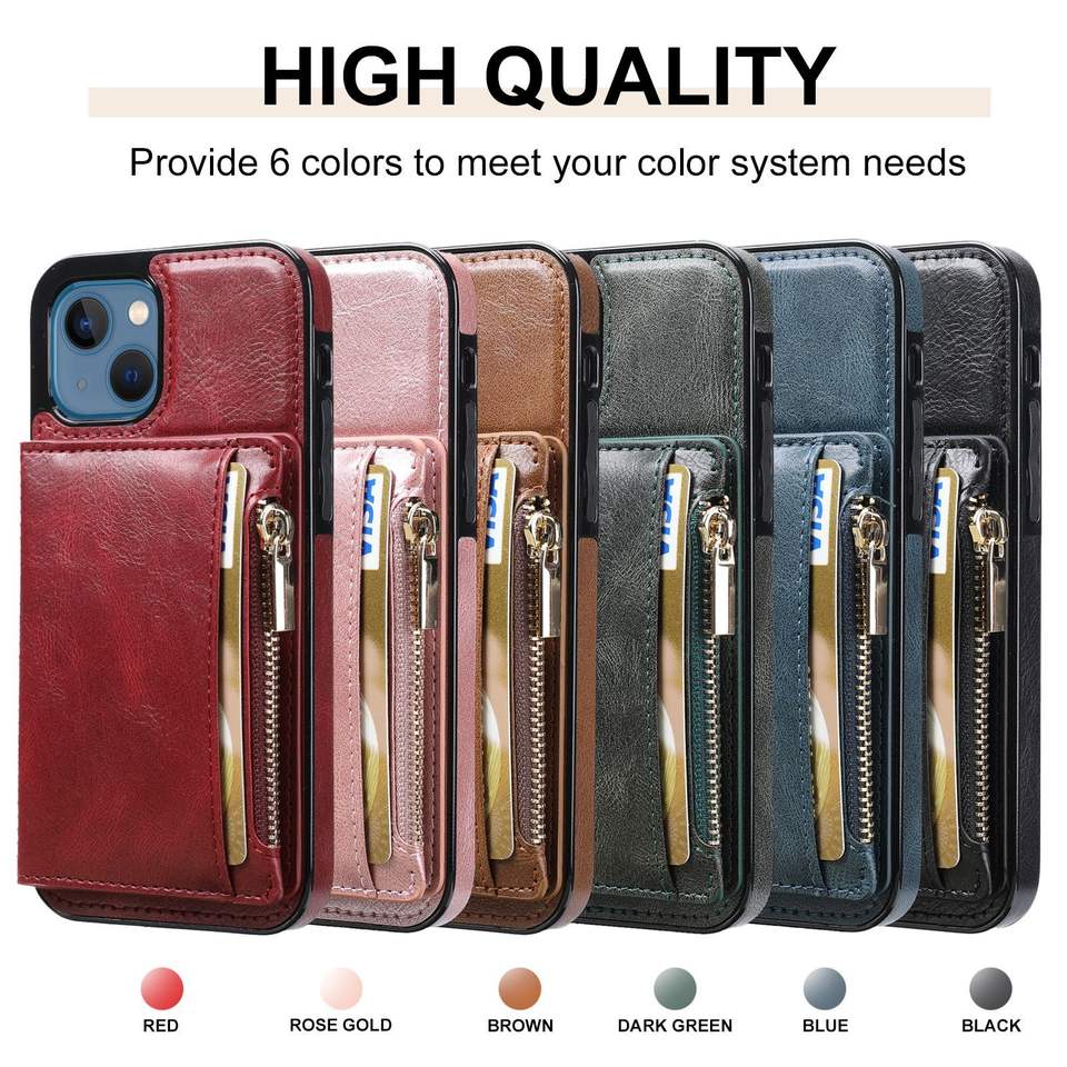 Nombre del producto:Retro con cremallera Cartera de cuero bolsa de teléfono caso para iPhone 13 Pro Max