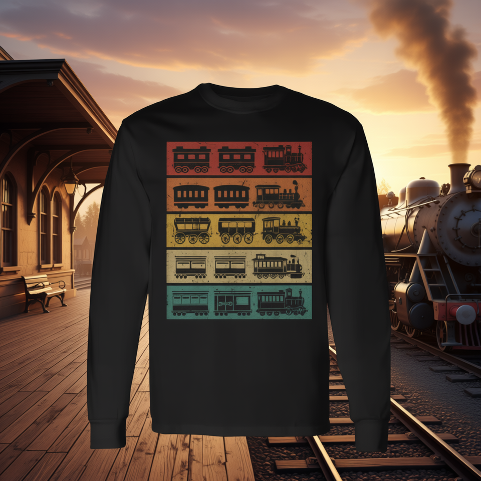 Camiseta de manga larga con diseño de locomotora de tren retro