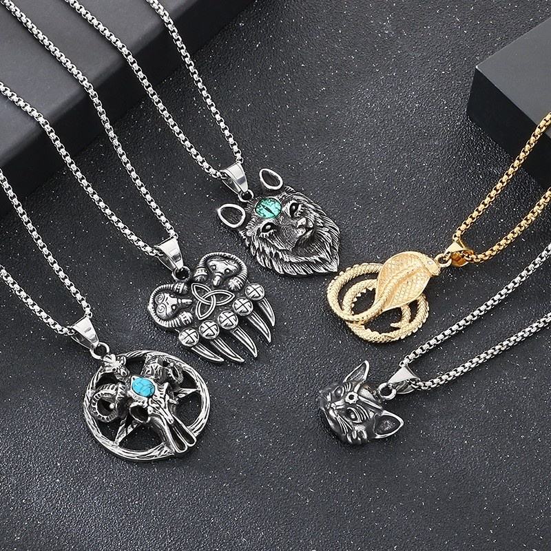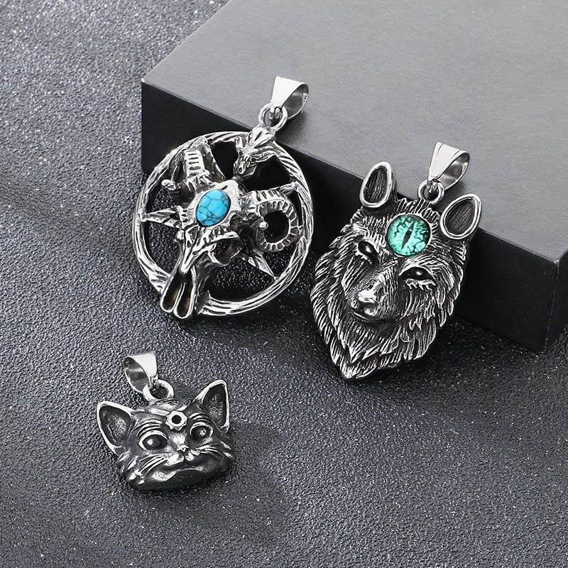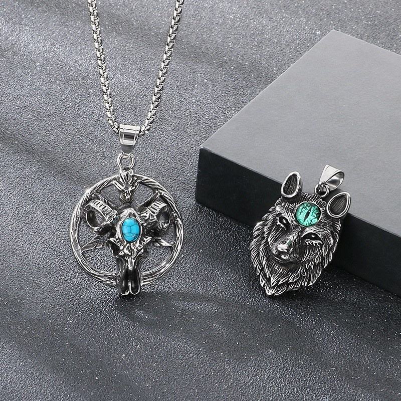Retro turquesa estrella de cinco puntas Satan Ram accesorio vikingo oso pata gato ojo piedra Lobo cabeza colgante de acero inoxidable collar