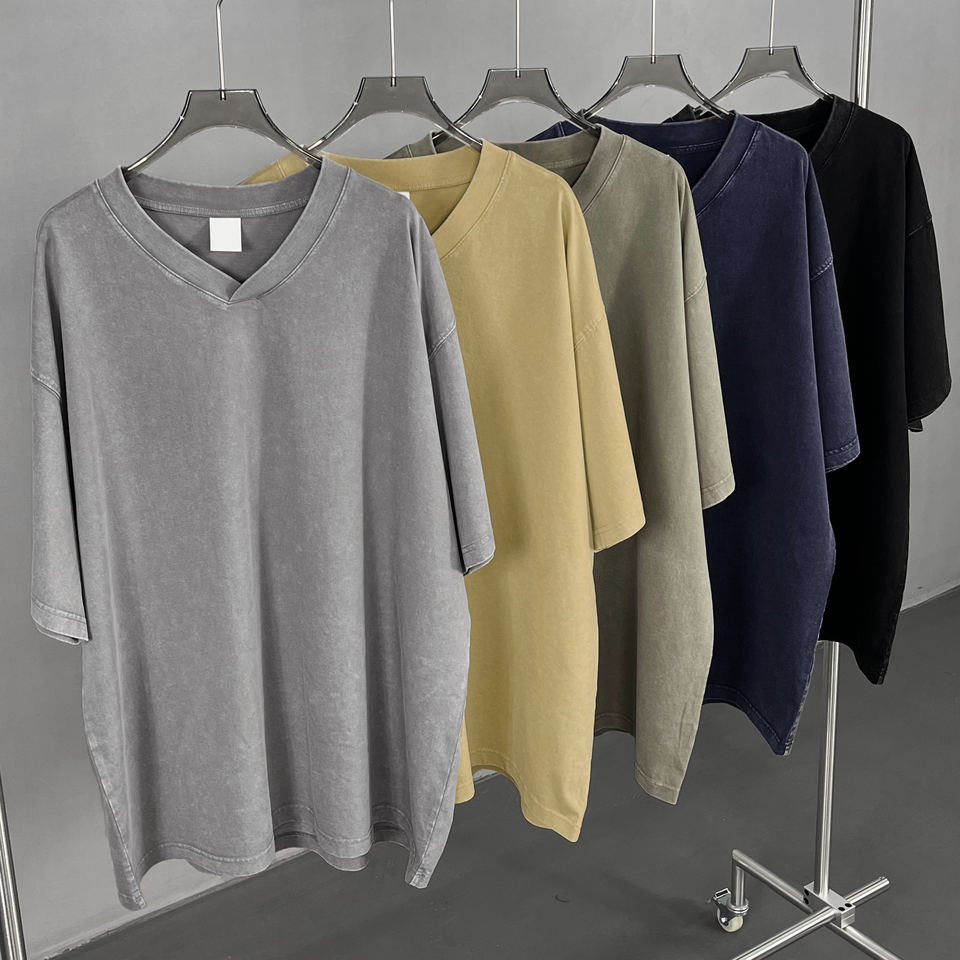 Camiseta de algodón vintage retro con cuello en V para parejas, ropa de calle a juego