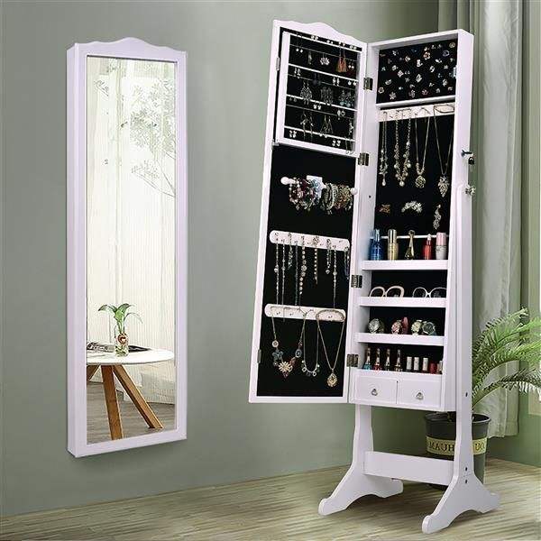Espejo de cuerpo entero retro blanco con revestimiento de PVC efecto madera, armario de joyería, tocador de maquillaje con espejo decorativo