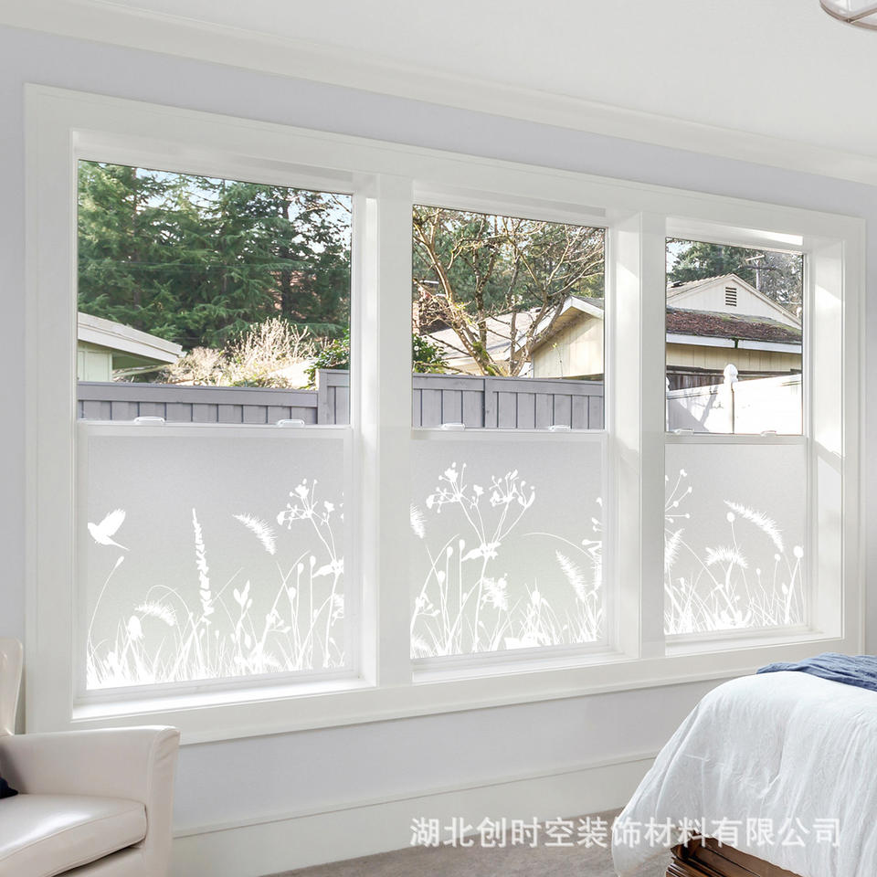 Retro Window Stickers Grass Shaped PVC Matte Lamination Self Adhesive Privacy Film For Bathrooms