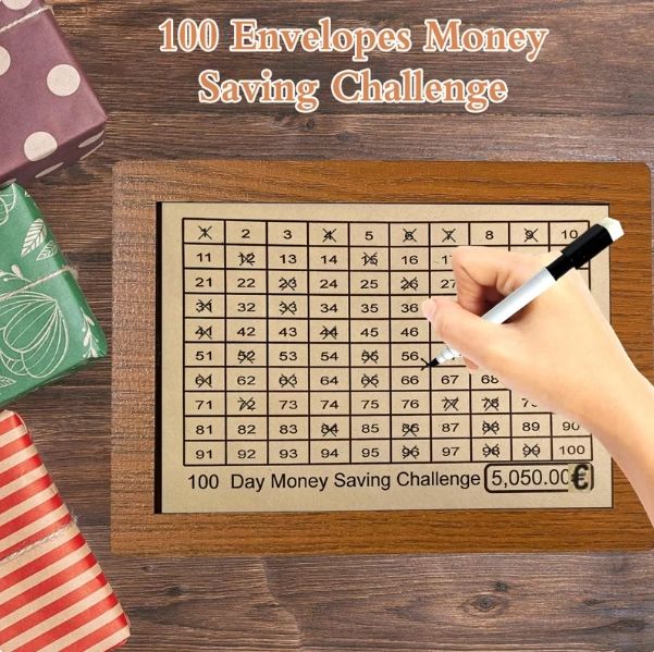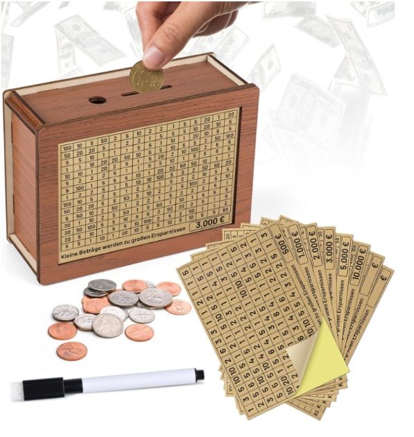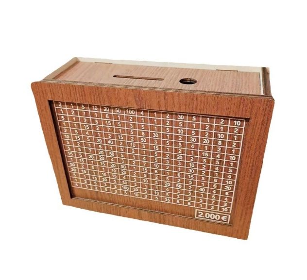 Hucha de madera rectangular para el desafío de ahorro de 10000, decorativa y ecológica