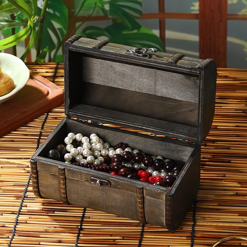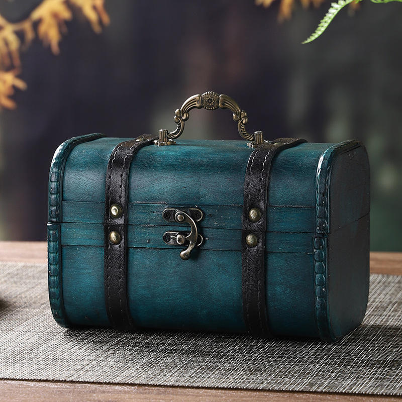 Caja de almacenamiento de madera retro con tapa abatible portátil para el hogar, organizador de joyas, cosméticos y documentos, caja decorativa