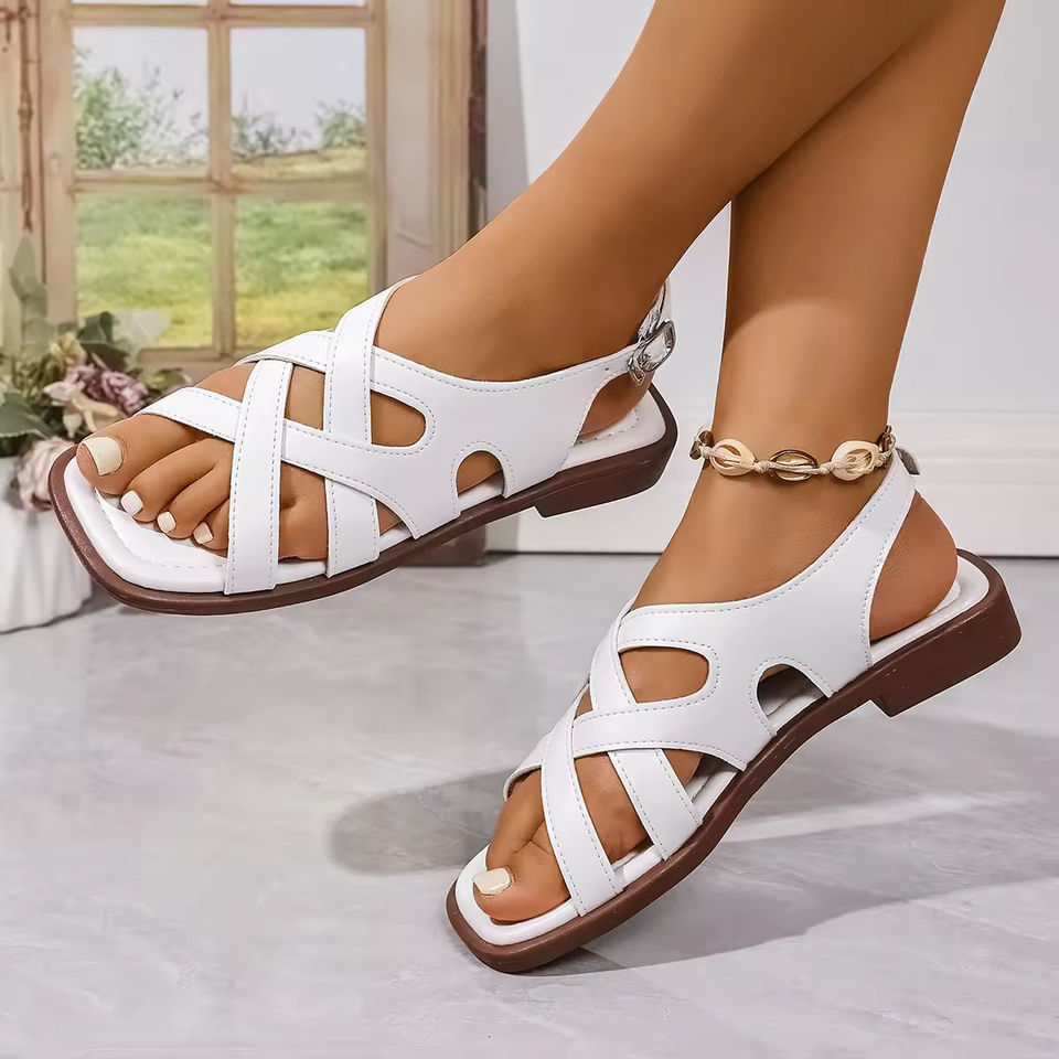Sandalias Romanas Retro Tejidas de Moda con Punta Abierta y Tacón Bajo Cuadrado para Mujer, Ideales para la Playa, Colección Verano 2026 - ¡Novedad!