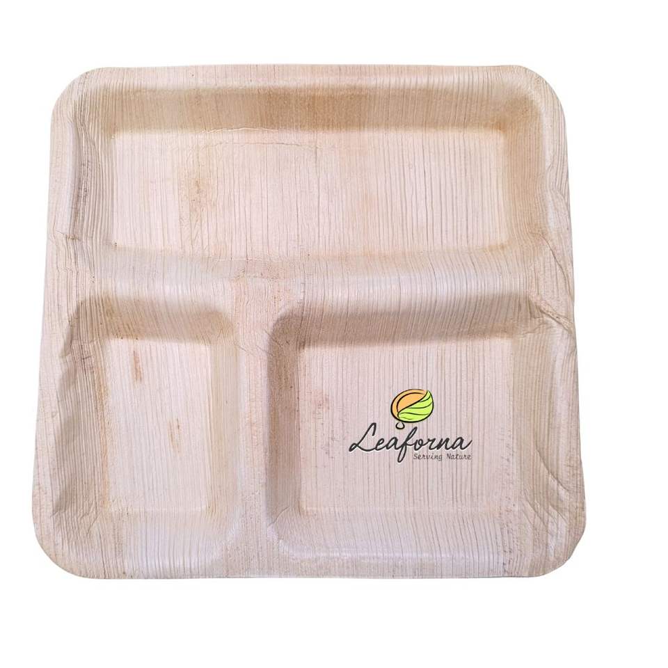 product name:PALM LEAF 9" SQUARE 3PARTITION PLATE