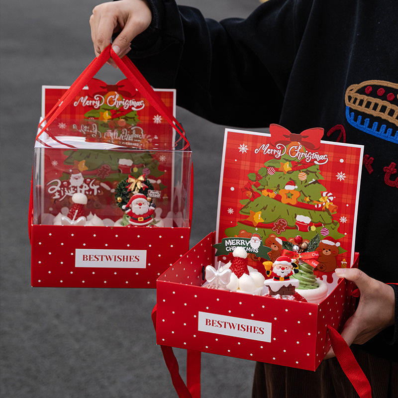 Caja de Regalo Reutilizable con Forma de Árbol de Navidad, Decoración para Postres, Vaso de Papel para Llevar, para Empacar Pasteles, Idea de Regalo Festiva para Navidad