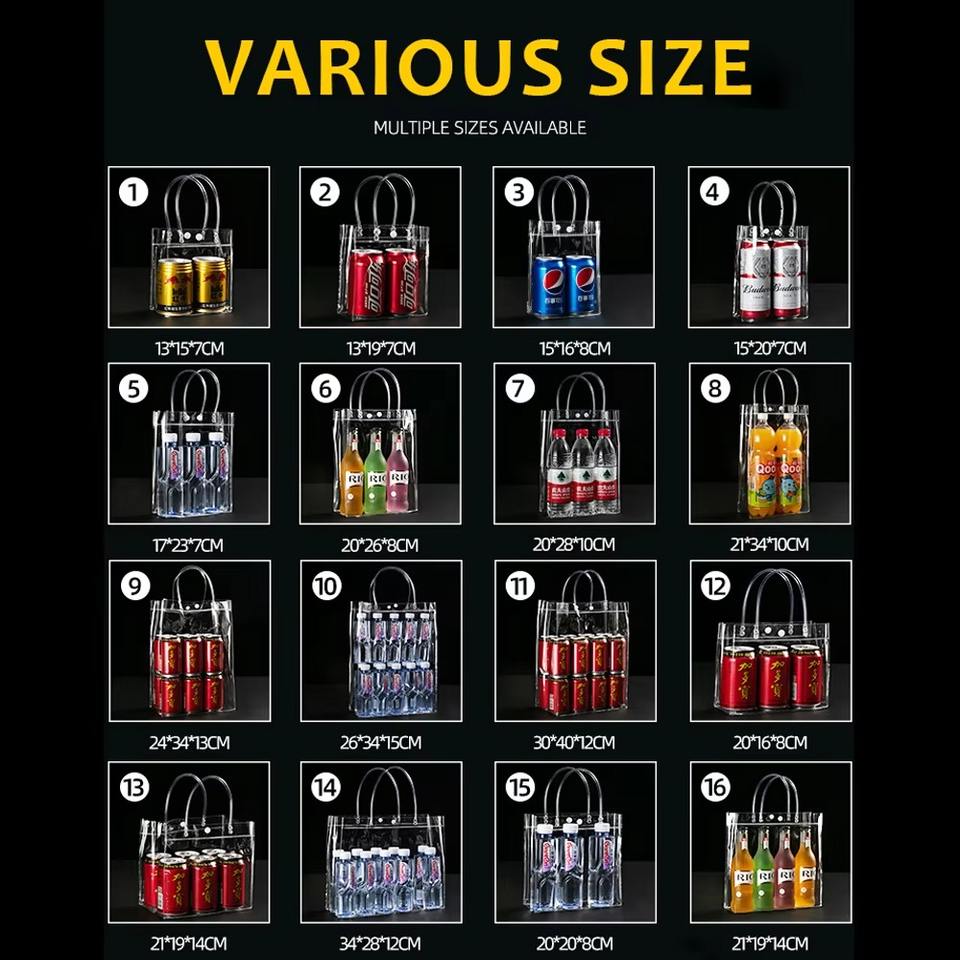 Bolsa de regalo de PVC transparente reutilizable con asa, bolsa de plástico transparente, bolsa de compras con logotipo personalizado para uso en bodas y fiestas al por menor