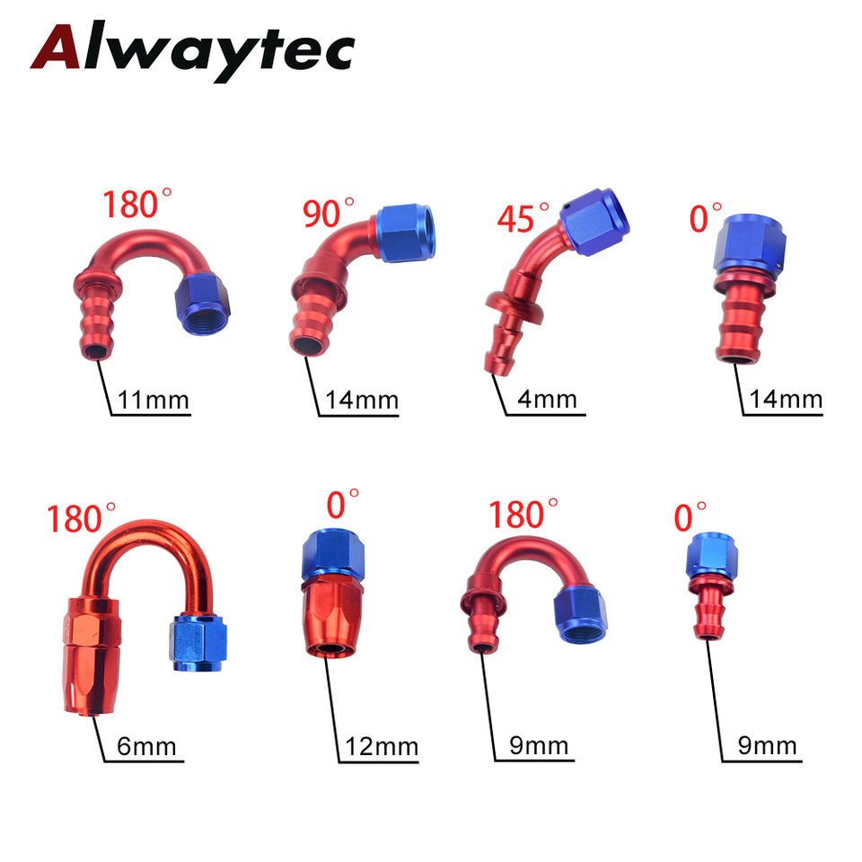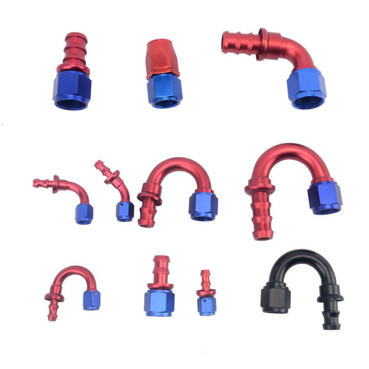Adaptador de conexión reutilizable Red AN6 AN8 AN10, manguera de presión de combustible y aceite 0 45 90 grados, extremo de manguera de goma