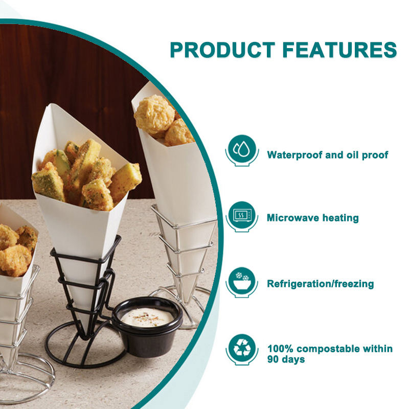 Recipiente de comida rápida reutilizable Kraft French Fry Cups Potato Chip Scoop Pizza Cone Holder con salsa para aperitivos